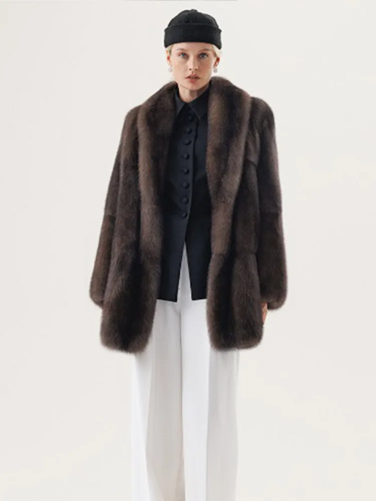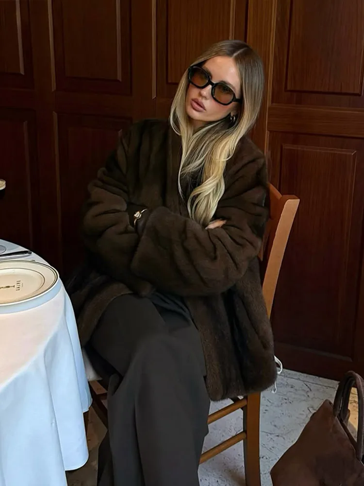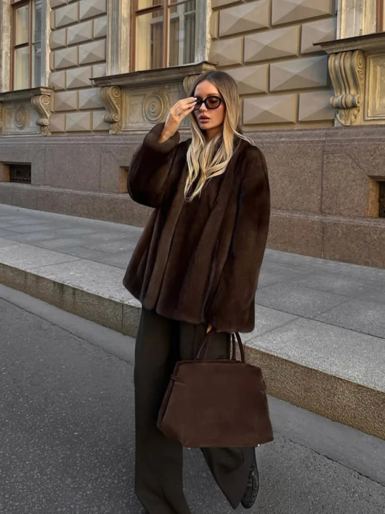 More than just a jacket, it’s a fashion statement. This short coat combines the opulent texture of faux fur with a modern, versatile brown hue, making it the perfect outerwear piece to add a touch of luxury to your everyday winter wardrobe.